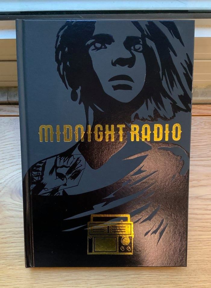 A set containing: The beautiful cloth-bound hardcover book containing our first 15 comics stories, the Midnight Radio coloring book, and an exclusive foil-embossed bookmark.